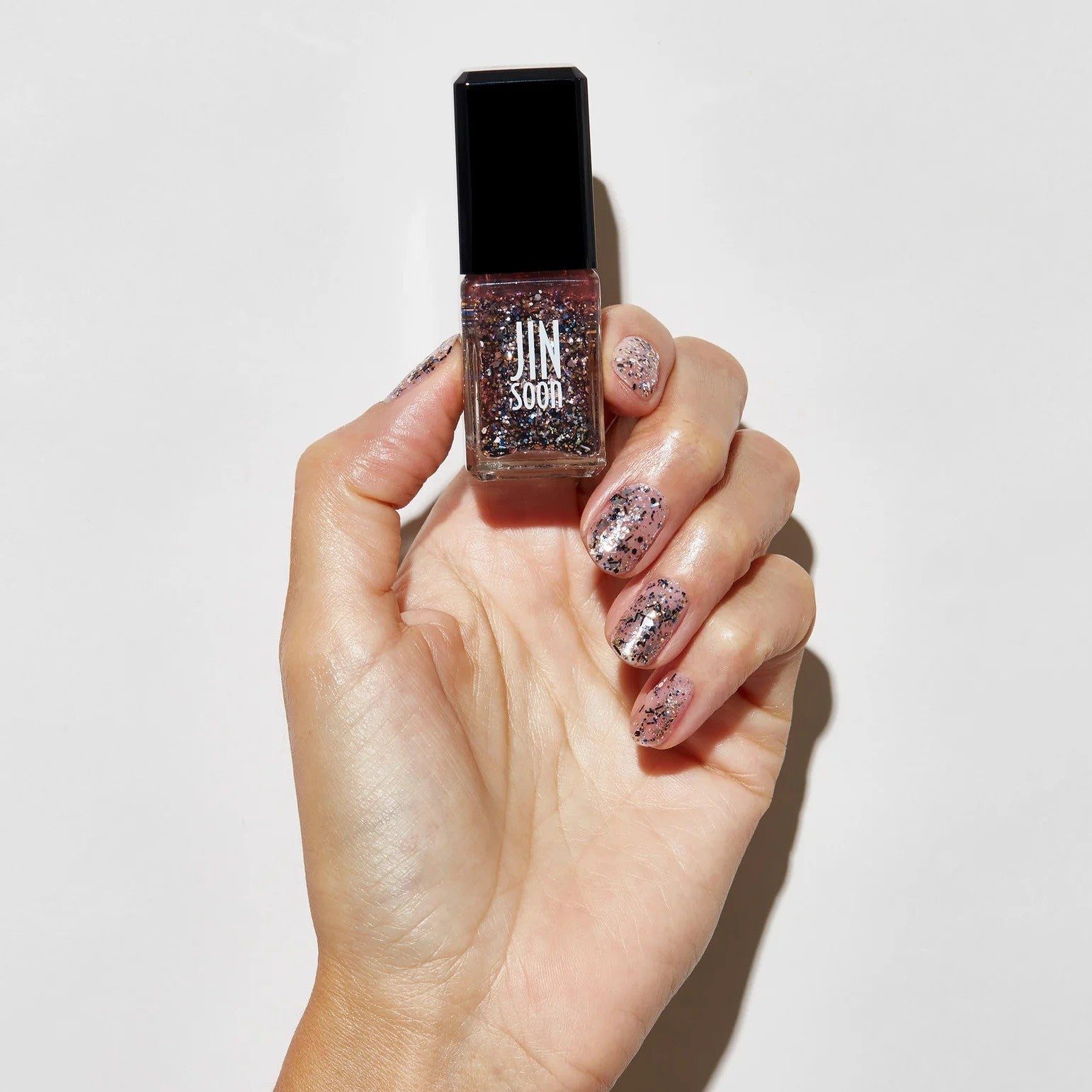 JINsoon is 21-free and formulated without harsh chemicals such as Formaldehyde, Toluene, animal derivative, Benzene, DBP, Phthalates, Cyclic Silicones, Formaldehyde Resin, Camphor, Xylene, Ethyl Tosylamide, Triphenyl Phosphate, Parabens, Hydroquinone, Bismuth Oxychloride, Synthetic fragrances, Tert-Butyl Hydroperoxide, 4-Methoxyphenol, Methyl ethyl ketone, Chromium Oxide Greens and Lead.