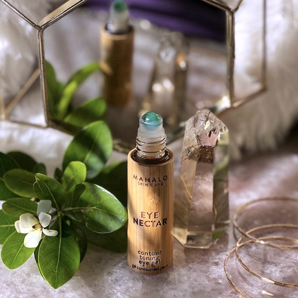 Handcrafted in Hawaii, USA: The EYE NECTAR is hand-blended in small batches, ensuring the highest quality and care. Stored in a glass bottle wrapped in renewable bamboo, this product offers an eco-luxurious skincare experience.