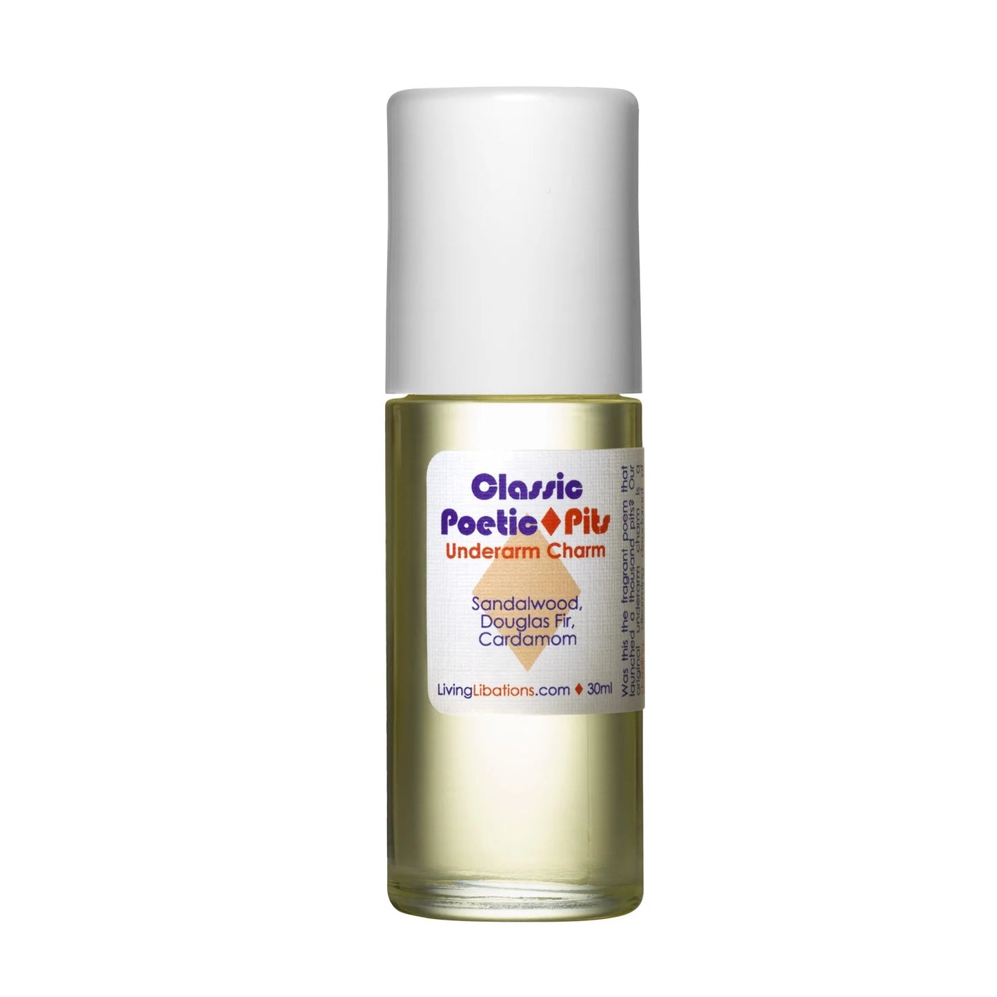 Please Note: Poetic Pits are 100% concentrated essential oils, so it is best to dodge damaged, inflamed, and allergic skin. The ingredients are selected from essential oils that are recognized as safe for the skin. As everyone has skin that responds uniquely, we advise users to patch test inside the elbow before using. Keep out of reach of children. For use on extra-sensitive skin, dilute with jojoba oil or try Living Libations Crème Underarm Charms.