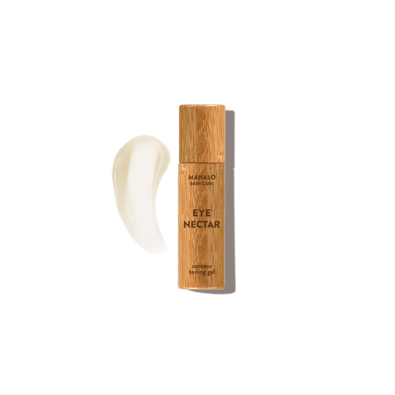 The EYE NECTAR contour toning eye gel is a featherlight, botanically enriched formula designed to refresh and tone the delicate skin around your eyes. It smooths the appearance of puffiness, fine lines, and loss of volume with the power of nature's finest ingredients, including Hawaiian coffee extract, chebula, gold, bakuchiol, and peptides.