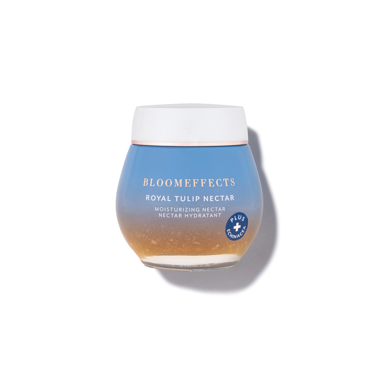 • Bloomeffects Royal Tulip Moisturizing Nectar balm in a jar with honey-like texture, used as a multi-use skincare product on white background