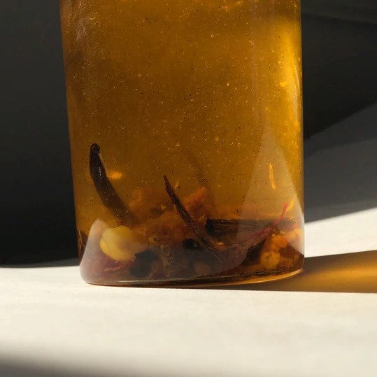 Fragrance profile: Warm sultry Arabian nights, vibrating with exotic Vanilla, bittersweet Orange blossom and only the faintest allure of Saffron. Tempered by ever so lightly toasted grain, slow dancing with mysterious smoke of Sandalwood and rounded by resinous, woody Myrrh and herbaceous Frankincense. Inhale, breathe, feel loved.
