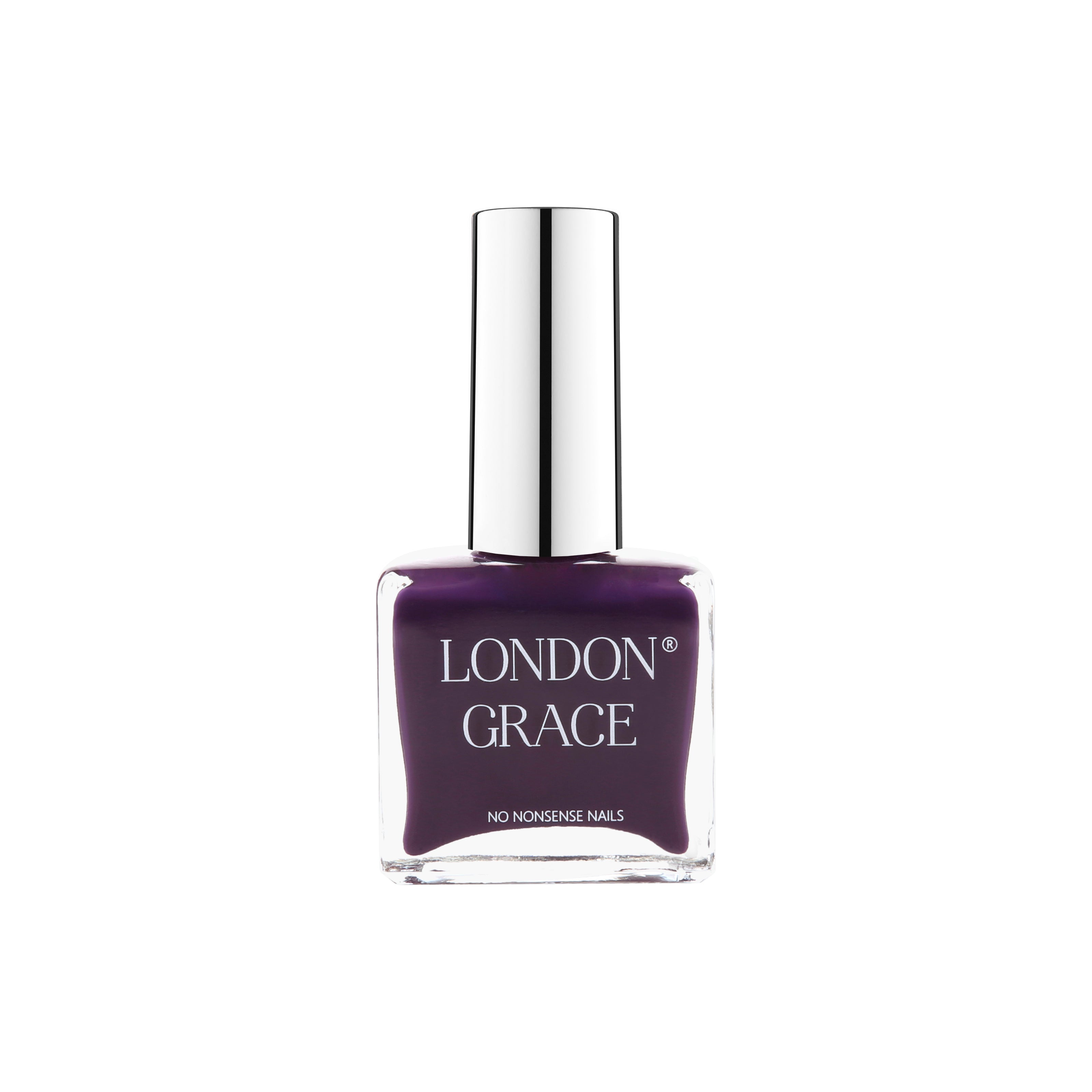 • London Grace Vhari Nail Polish – deep plum with high pigmentation and a glossy, long-wearing finish. Vegan and cruelty-free.